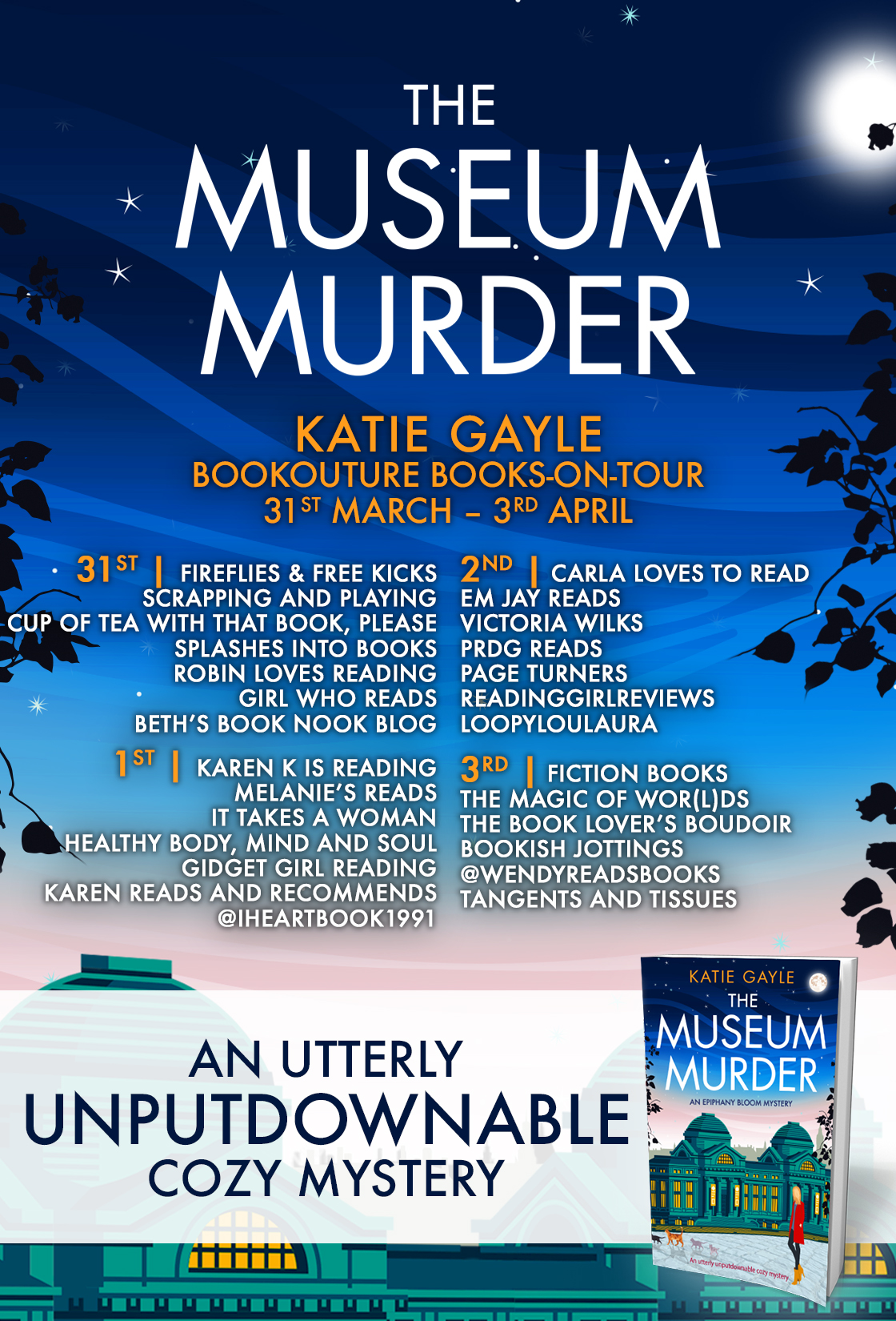 I love this series of cozy mysteries featuring the intrepid and often comical Epiphany Bloom, and I was thrilled to take part in the blog tour for Katie Gayle’s latest installment: The Museum Murder.
