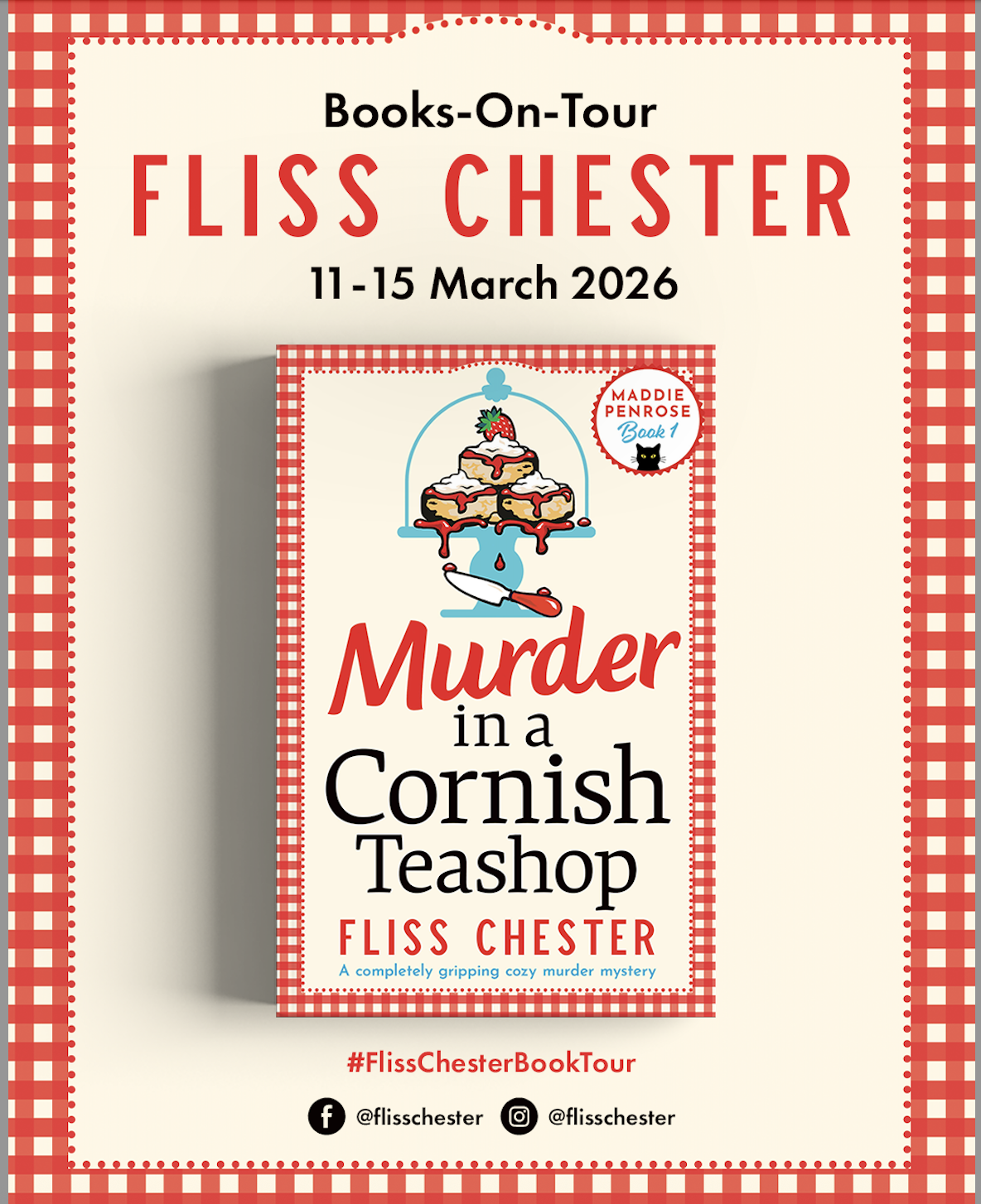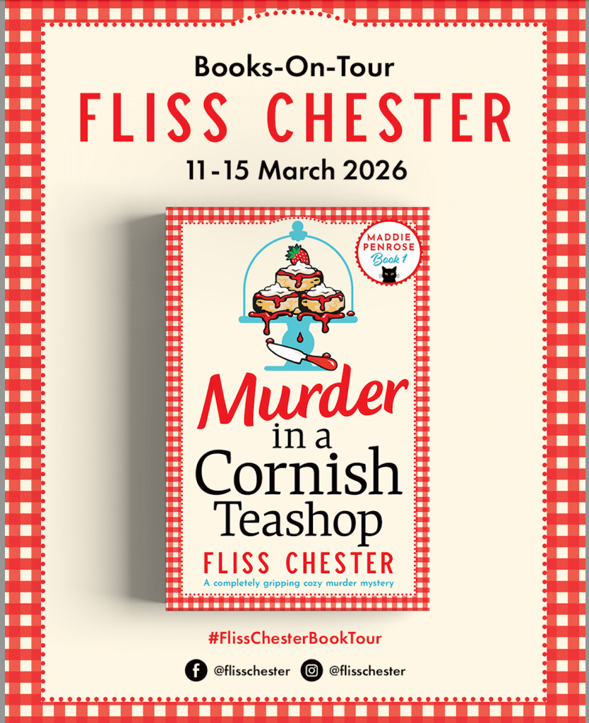 I’m excited to dish about a new cozy mystery series by the author who brought us Cressida Faucett – Fliss Chester. This is Murder in a Cornish Teashop and it’s the first in the Maddie Penrose mysteries. I really enjoyed it and enjoyed the characters of Maddie and her spunky Grandmother, Nor.