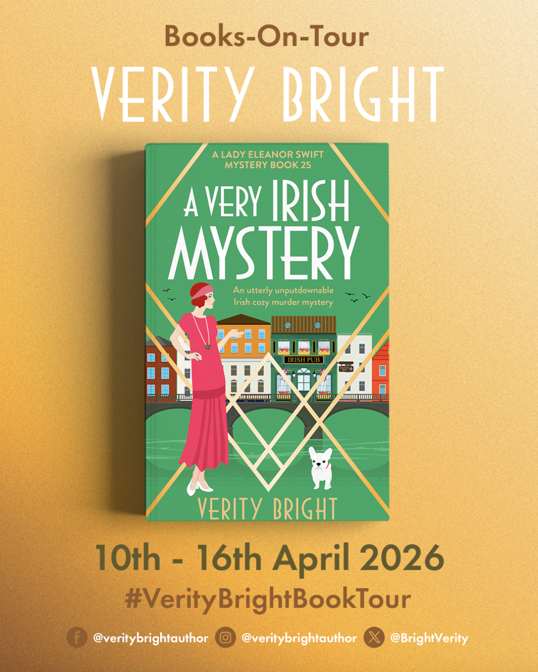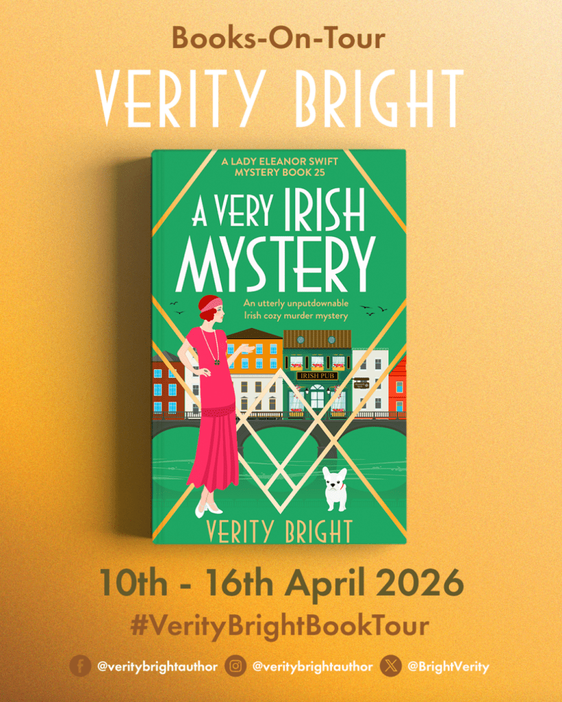 I’m here today to chat about the latest Lady Eleanor Swift cozy mystery, A Very Irish Mystery by Verity Bright. I love this series and this character and her dog. Hard to believe this is book #25. You don’t need to read them in order – jump in anywhere! I did not figure this one out before the end. I did love that it took place in Ireland.