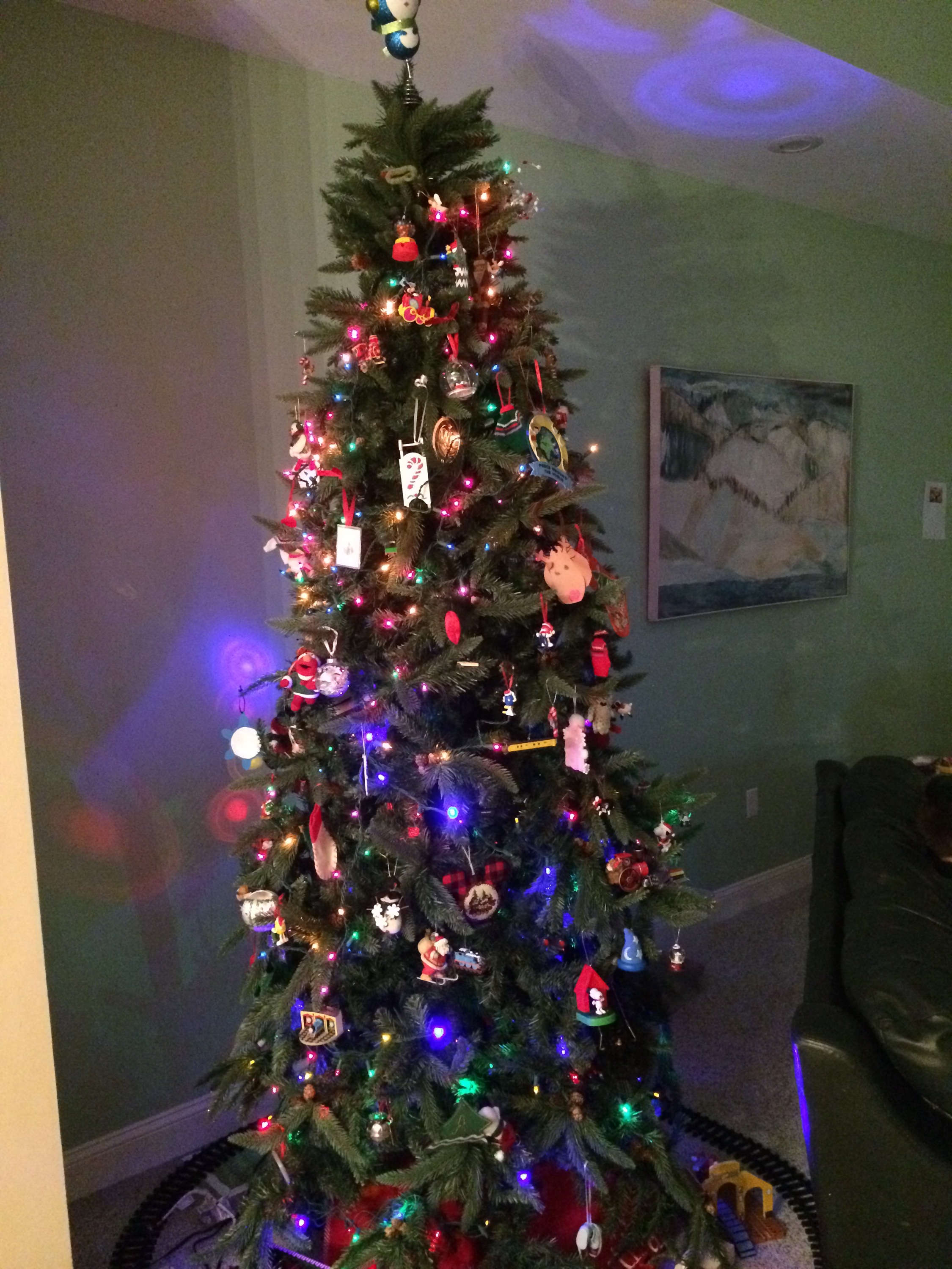 Here are some pictures of Christmas at our house. We like to have two trees – a real one in the living room with our family (and breakable!) ornaments, and an artificial one for the kids in the family room with their ornaments.